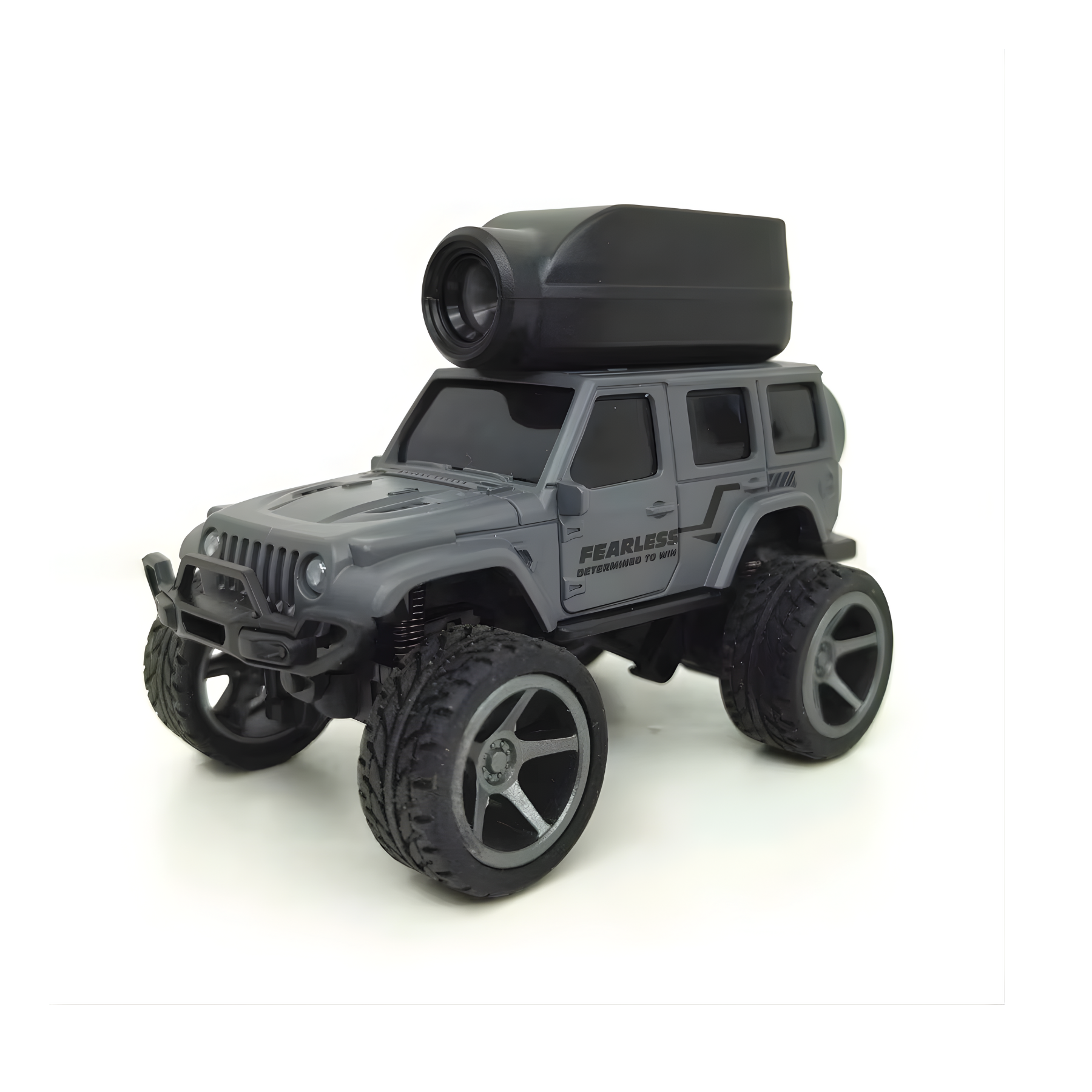 The 2.4GHz radio technology allows you to control the drone at an incredible range with no radio interference. 2. Mini RC Car, easy to carry. 3. 2 different speeds to control. 4. With Wifi 480p Magnetic camera, easy to install, realtime transmission, take photo and video. 5. Function: forward and backward, turn left and right, with light, auto demo.